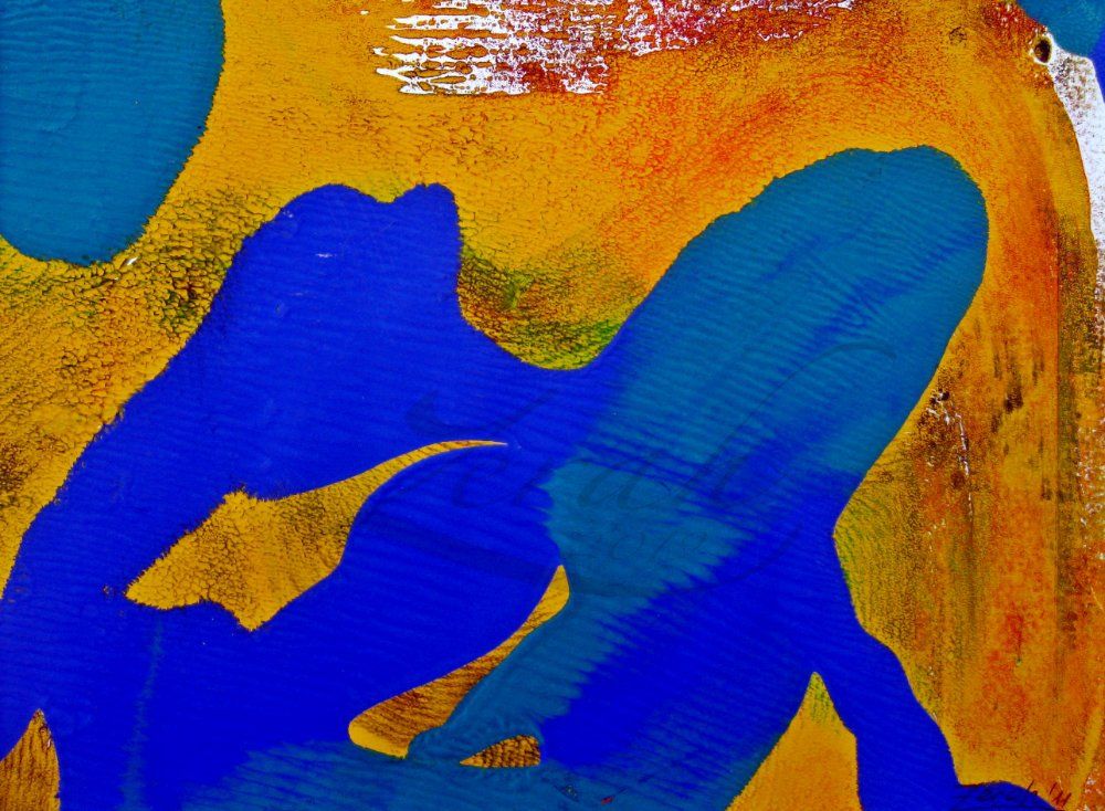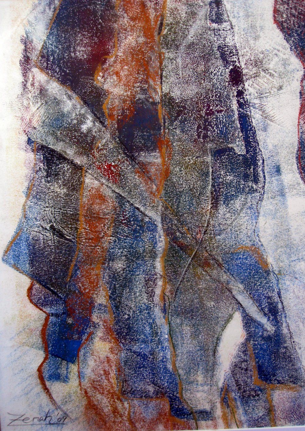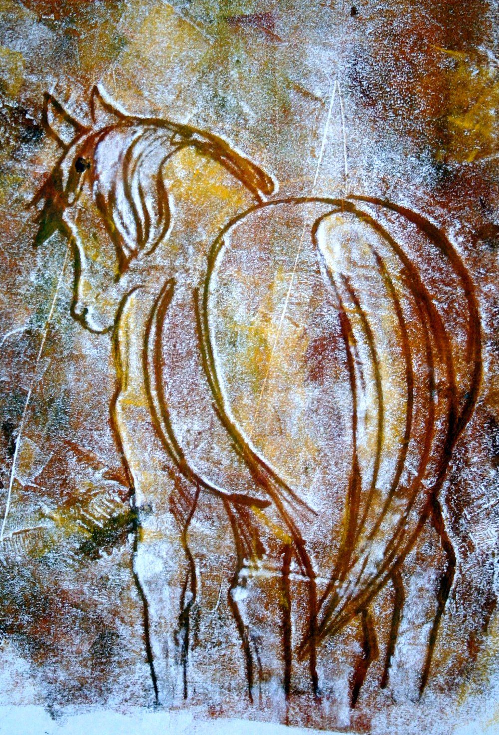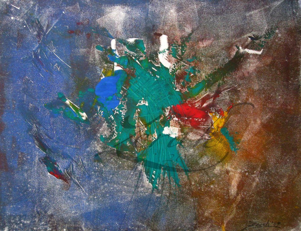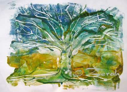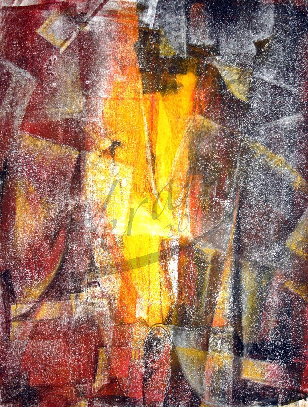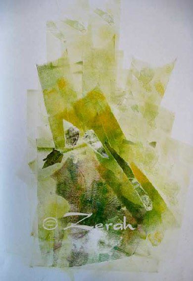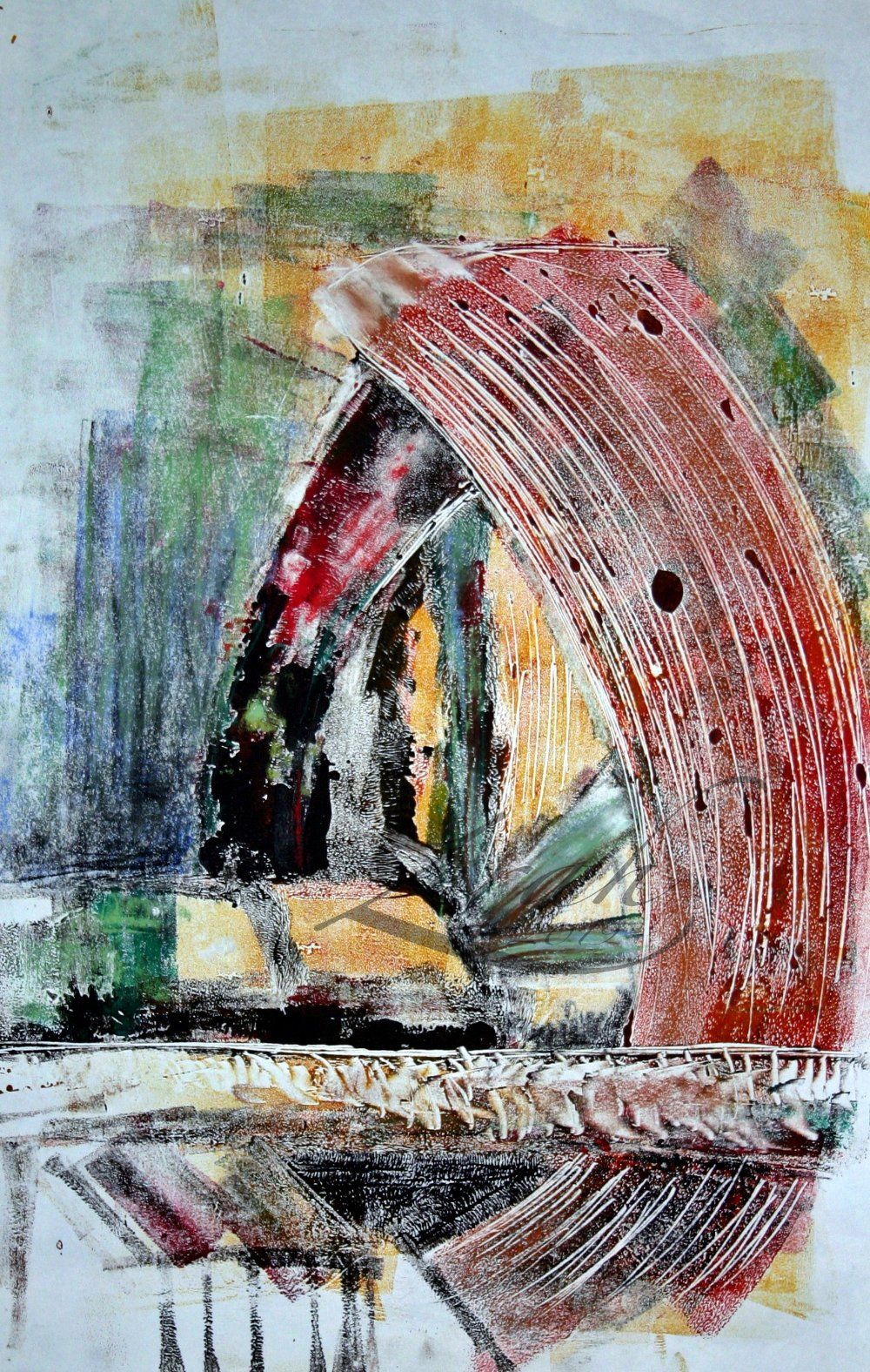 Eine Drucktechnik, die meist nur einen einzigen Abzug ermöglicht. Die so entstehenden Motive beinhalten meist zufällige und spontane Elemente, die zum Weitergestalten einladen. Das macht diese Technik so abwechslungsreich, herausfordernd und spannend. Alle Arbeiten sind mit wasserlöslicher Druckfarbe auf speziell dafür geeignetem Papier gedruckt. Teilweise habe ich sie noch grafisch mit Pastellkreiden, Finelinern und Tusche überarbeitet, um bestimmte Formen zu betonen.
