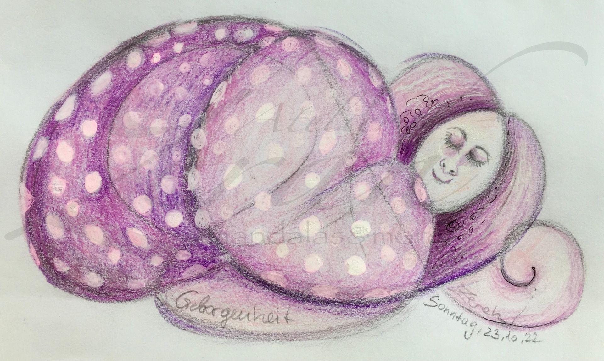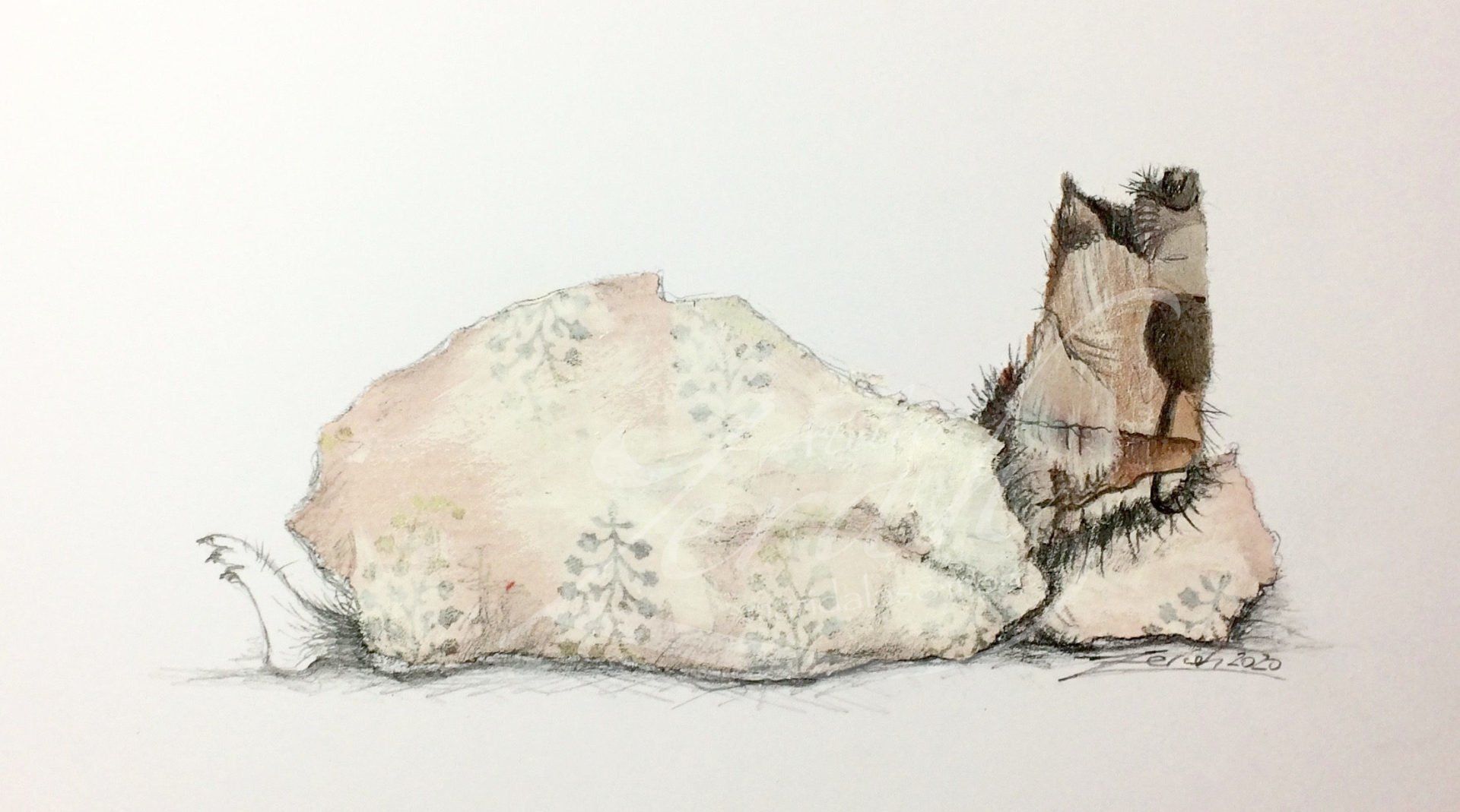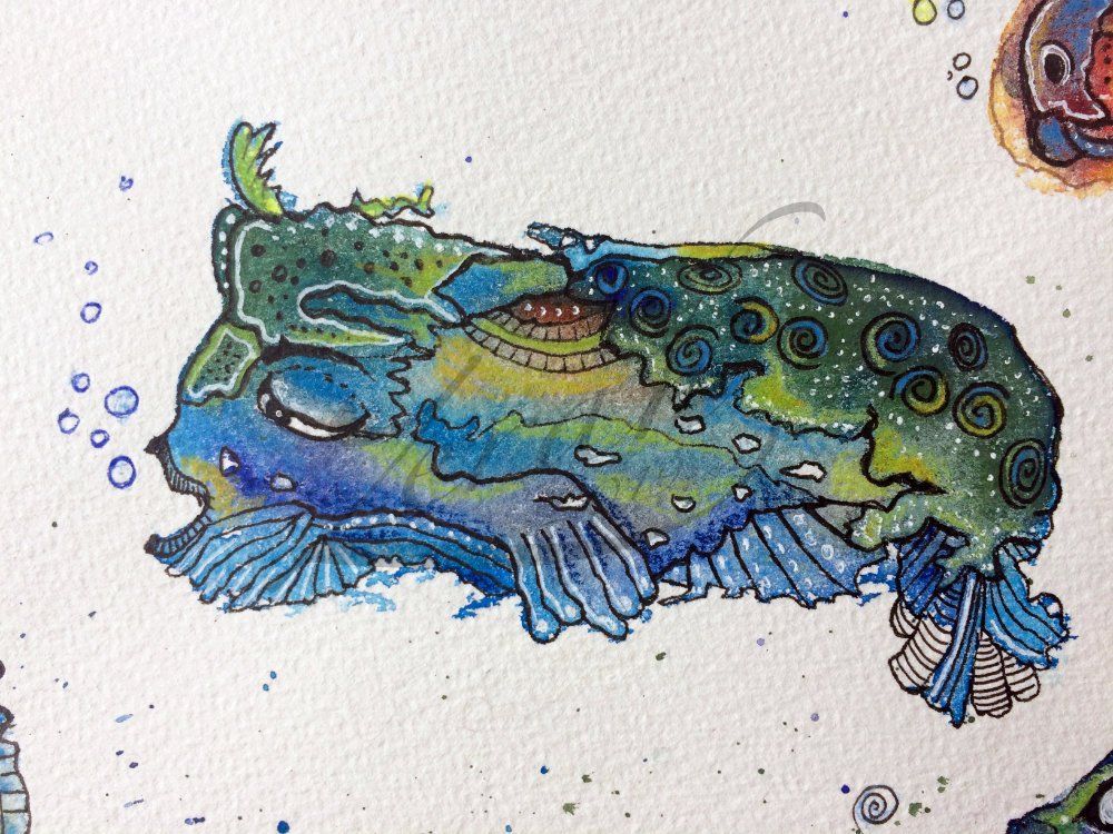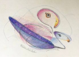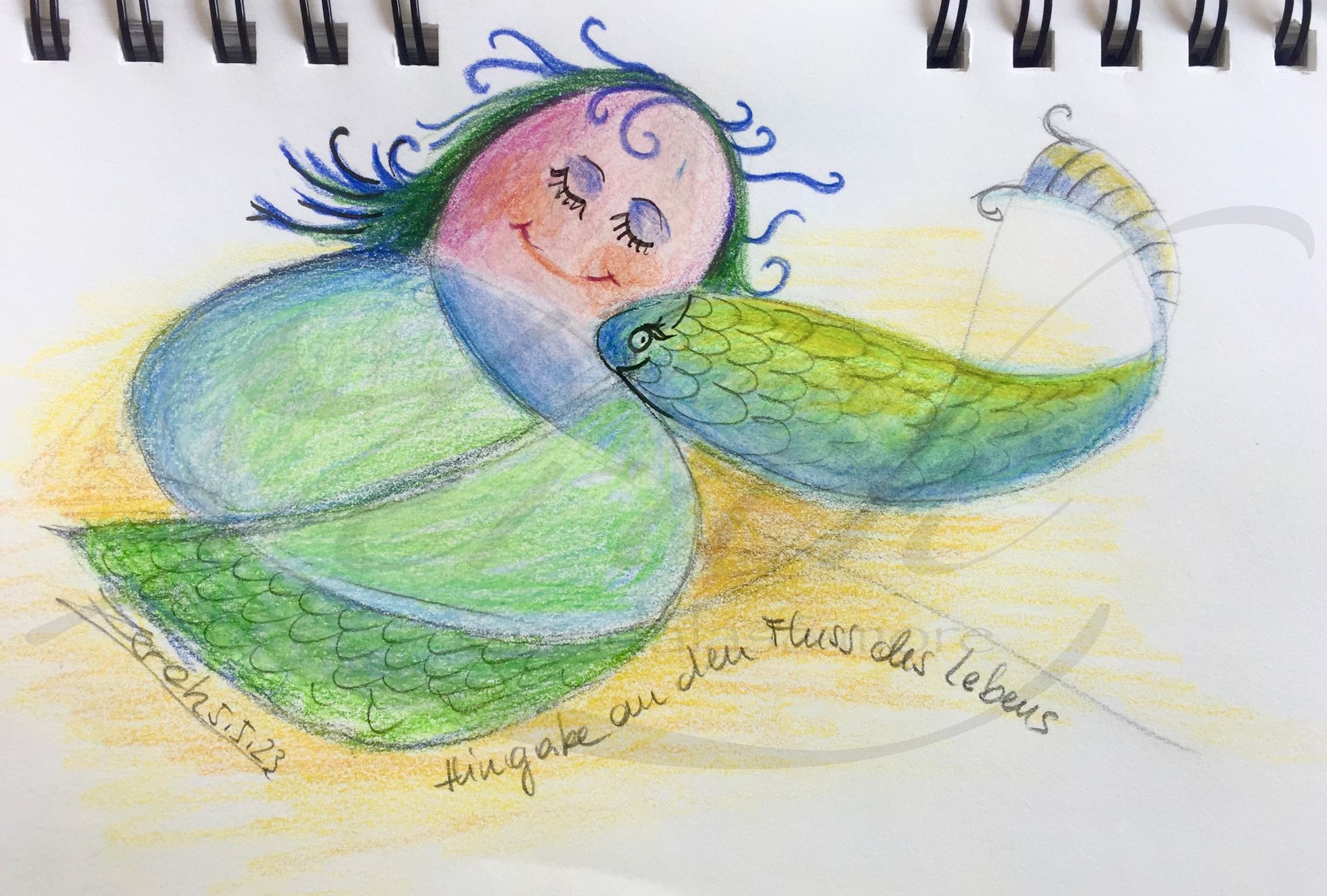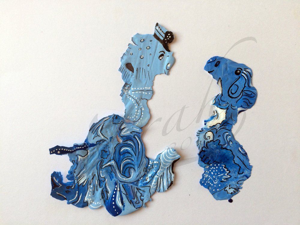 Sie entwickeln sich aus Teilen von Monotypien, spontan entstehenden Farbflächen und grafischen Elementen, sowie aus gerissenen Teilchen verschiedener Papierarten und Washi-Tapes. Es macht mir großen Spaß zu entdecken, welche Persönlichkeiten hier zum Vorschein kommen wollen. Durch Linien, Muster und grafische Texturen verleihe ich ihnen ihren individuellen Charakter und erwecke diese Kreaturen zum Leben. Meist beinhalten diese Wesen auch Botschaften und Hinweise auf persönliche Themen sowie die aktuelle Stimmungslage.