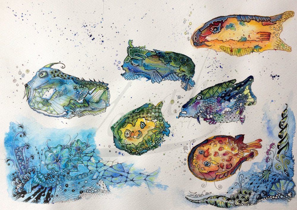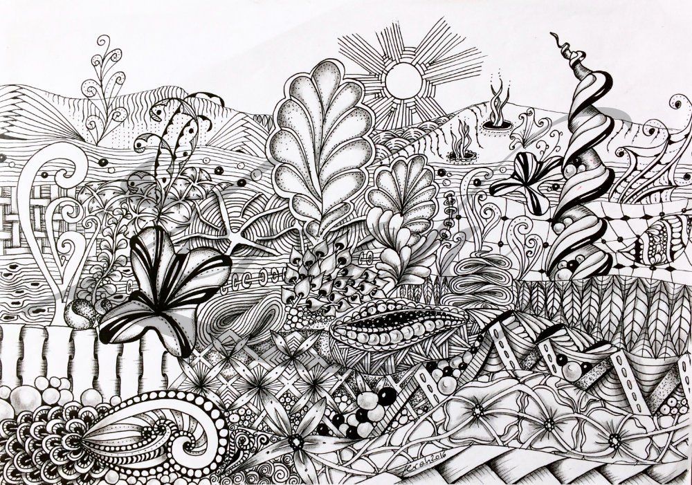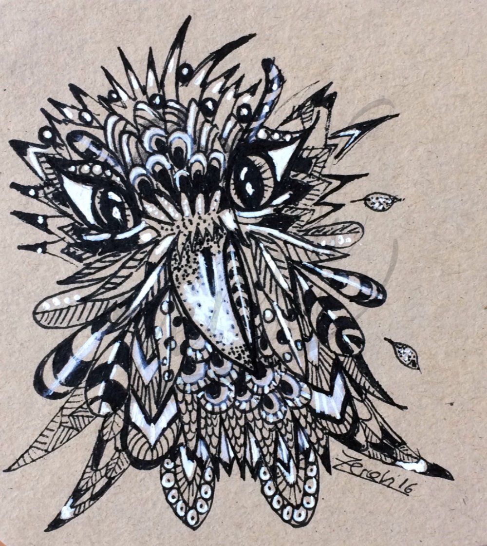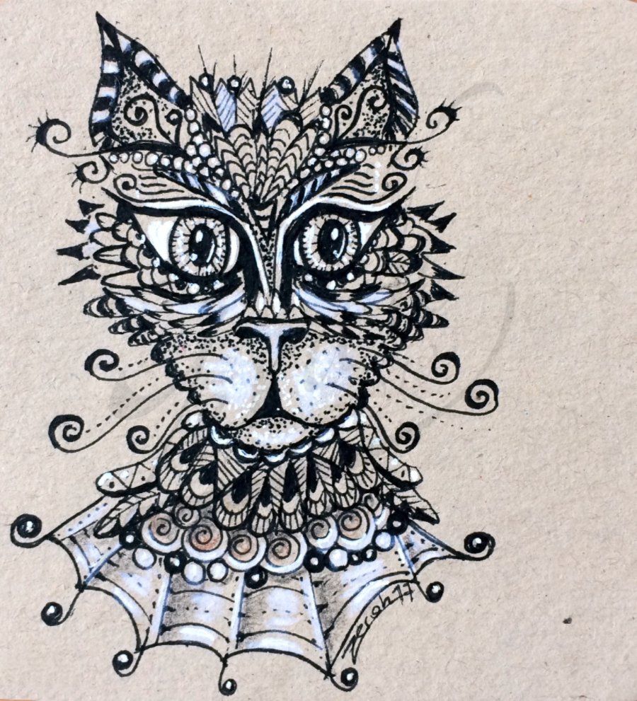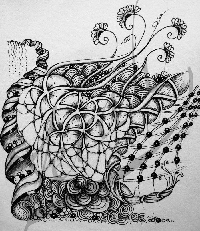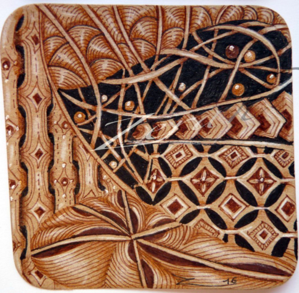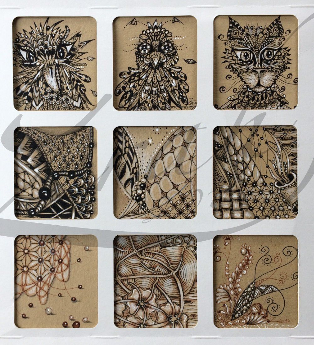 Zentangle - eine Leidenschaft, die mich schon seit einigen Jahren begleitet und nach wie vor in ihren Bann zieht. Strich für Strich von einem Muster ins nächste wandern und so Figuren und Formen kreieren. Dabei Entspannung und Inspiration finden, die auch in meine anderen Arbeiten einfließen darf. Falls nicht anders angegeben, haben die Tiles eine Größe von 9x9cm, und sind mit dokumentenechten Finelinern und Farbstiften auf unterschiedlichem Papier angefertigt. Preise auf Anfrage.