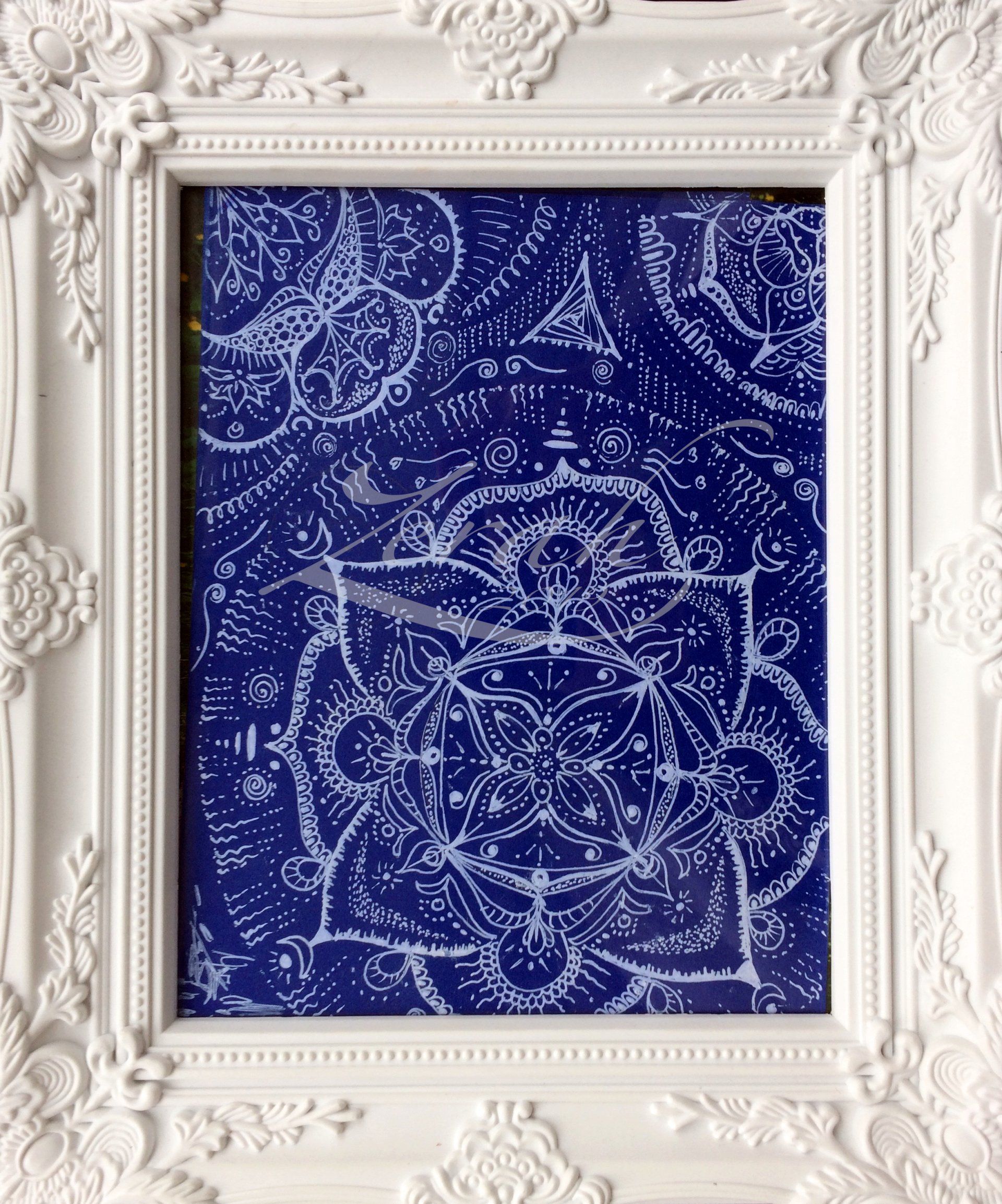 Meine Mandalas sind freihand gemalt bzw. gezeichnet. Ich verwende keine Schablonen oder Vorlagen sondern arbeite intuitiv. Linie für Linie entsteht ein Geflecht aus Mustern und Symbolen, die sich zu einem feinen Gewebe schließen, in dem sich das Auge des Betrachters verlieren kann - und doch immer wieder in die Mitte zurück findet.