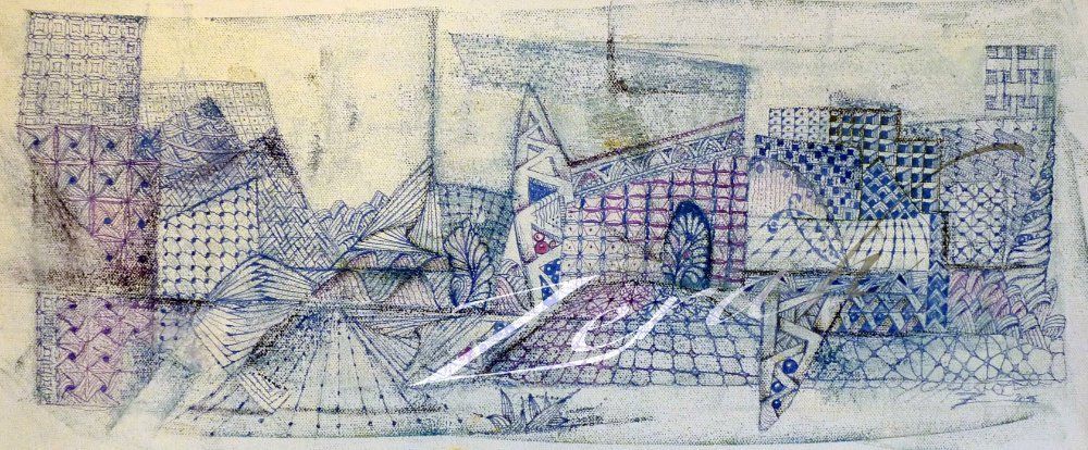 Diese "Zufallstechniken", sind für mich ein humorvoller Ausgleich zu der strengen Symmetrie und kontemplativen Arbeit an den Mandalas und den Tangles.